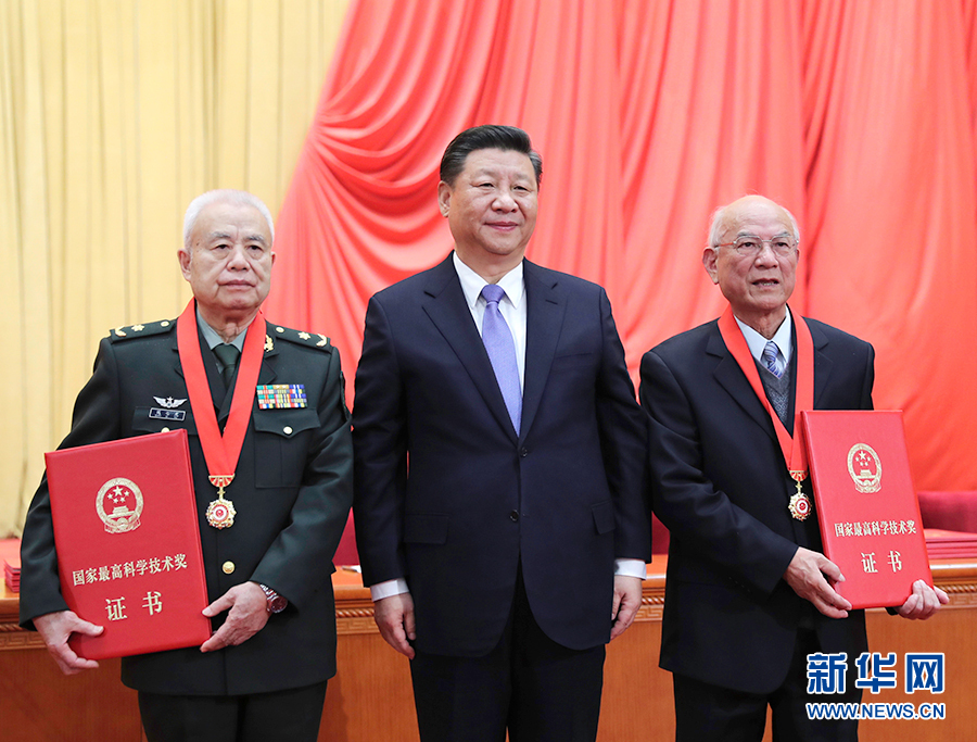 1月8日,2018年度國家科學技術獎勵大會在北京人民大會堂隆重舉行。這是中共中央總書記、國家主席、中央軍委主席習近平向獲得2018年度國家最高科學技術獎的哈爾濱工業大學劉永坦院士頒發獎章。 新華社記者 謝環馳 攝