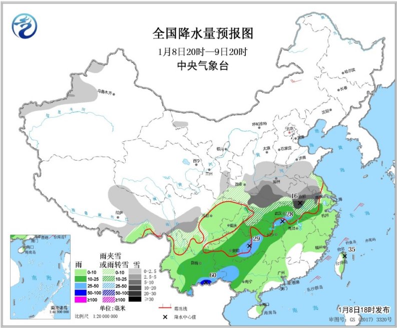 新華網北京1月8日電 據中央氣象臺消息,1月8日至1月11日,南方地區將有一次大范圍的明顯降水過程。1月8日至9日,云南大部、貴州大部、廣西西北部、重慶東南部、湖南西部和北部等地將出現大雨或暴雨,其中,云南南部局地將出現100毫米至120毫米的大暴雨;同時黃淮、江淮等地將有大到暴雪。中央氣象臺于1月8日早晨發布暴雪藍色預警。對此,中央氣象臺專家對本次南方地區持續陰雨天氣以及相關特點、成因及未來發展趨勢等進行分析解讀。