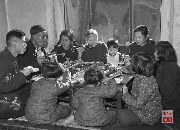 1953年,天津市漢沽區(qū)蘆臺(tái)王德鑄(左一)一家吃團(tuán)圓飯。