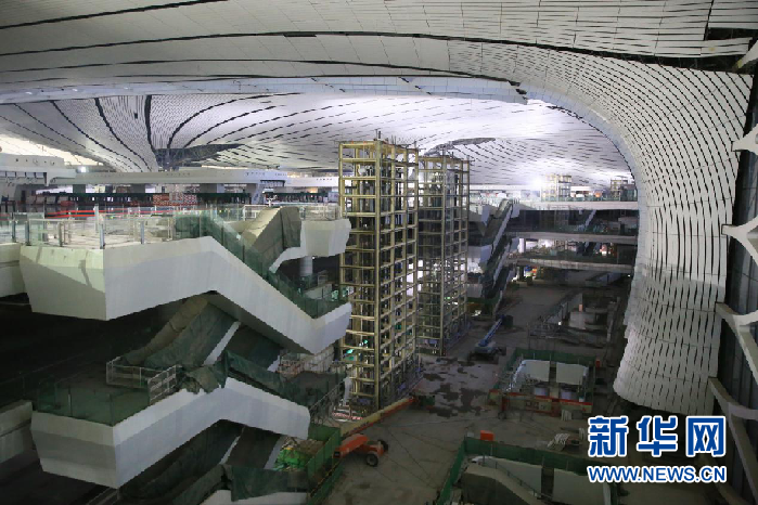 圖片說明:大興國際機(jī)場在春節(jié)期間從未停工,工人們熱火朝天地工作,以實(shí)現(xiàn)6月30日竣工的目標(biāo)。攝影:新華網(wǎng)錢春弦