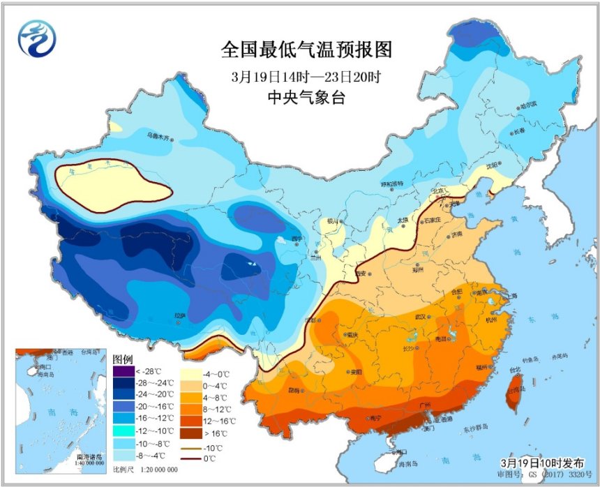 張濤:這次冷空氣過(guò)程體現(xiàn)出降溫幅度大和影響范圍廣的主要特點(diǎn)。由于前期氣溫較高,在這次天氣過(guò)程中,各地基礎(chǔ)氣溫不會(huì)太低,氣溫變化帶來(lái)的影響較大,但公眾感覺(jué)的寒冷程度不會(huì)太大。中央氣象臺(tái)已于3月19日10時(shí)發(fā)布寒潮藍(lán)色預(yù)警,提醒公眾注意氣溫變化。