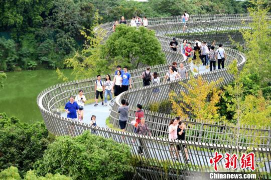 福州市園林局工作人員說,福州的城市綠道建設結合串珠公園建設、內河治理,使市民和游客能享有登山看城、游園親水的“一站式”體驗,其中“福道”成為了福州這個“山水”城市特有的“名片”。