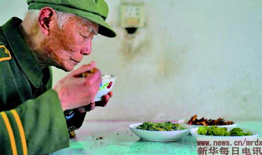 3月27日,程樟柱在屋內吃飯。