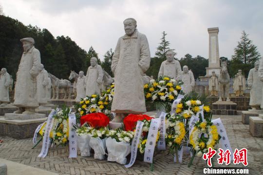 中國遠征軍老兵達成遺愿夫婦骨灰安葬抗戰遺址。圖為徐中平雕塑。陳靜 攝