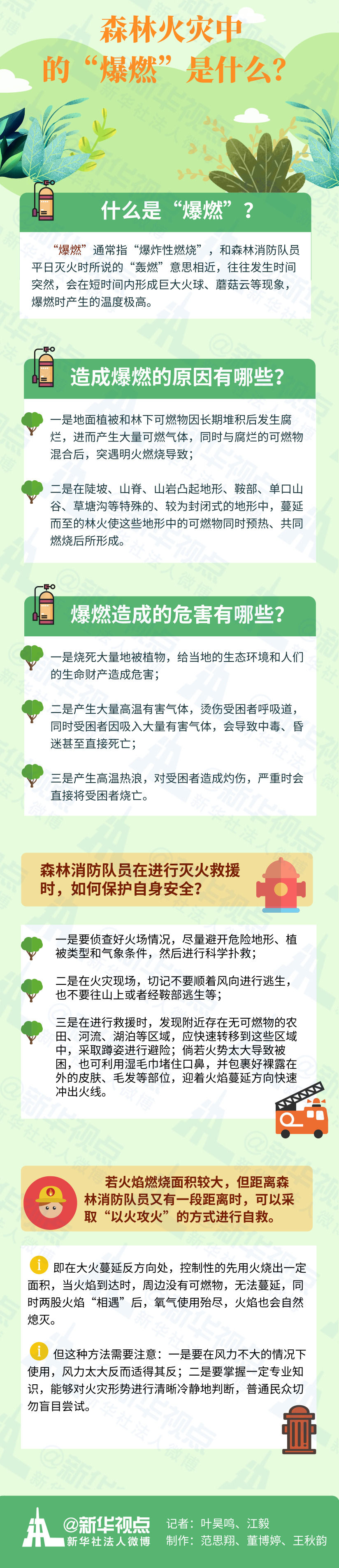 什么是“爆燃”?中國森林消防學科帶頭人白夜說:“‘爆燃’ 通常指‘爆炸性燃燒’,和森林消防隊員平日滅火時所說的‘轟燃’意思相近,往往發生時間突然,會在短時間內形成巨大火球、蘑菇云等現象,爆燃時產生的溫度極高。”