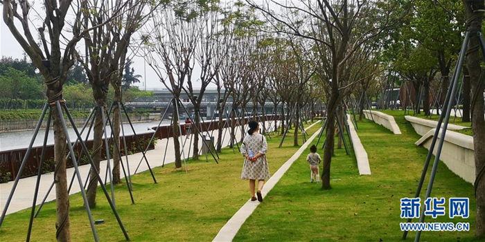市民在深圳市南山區(qū)大沙河生態(tài)長廊散步(4月11日攝)。新華社記者 白瑜 攝