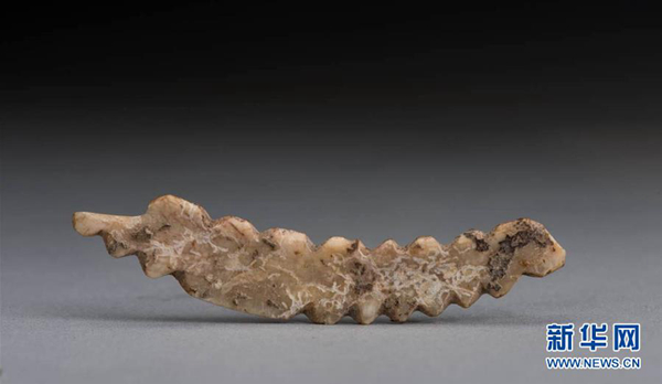 這是河南鞏義雙槐樹遺址出土的牙雕蠶(資料照片)。新華社發(fā)(鄭州市文物考古研究院提供)