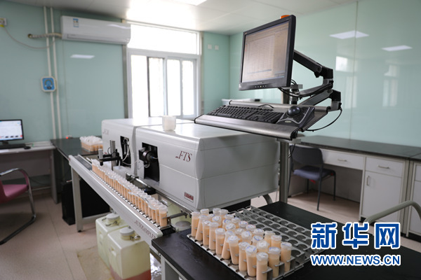 在辦公室簡單的交談后,叢慧敏帶記者來到旁邊的一棟辦公樓,門口的工作人員正在從手推車上卸下裝滿了橙色乳狀液體的試管,這也就是叢慧敏的另一項工作——對奶牛產下的牛奶進行化驗分析。除了找到好牛,還得讓牛吃上好料,“跟人一樣,我們也會根據牛的身體狀況合理搭配飲食,目標就是保證奶質好。”每個月首農北京奶牛中心都要檢測約8萬份奶樣,對這些來自全國各地的奶質進行分析,通過數據對比得出結果,再將結果反饋給牧場,指導牧場飼養(yǎng)過程中需要改進的問題?!芭e個例子,某牧場樣本中,我們檢測發(fā)現乳脂低了,那么牛的食物里可能是吃的草少了,就需要我們減少某類飼料的分量,增加草的比重?!?/p>