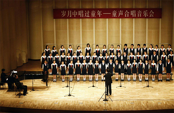 2012年12月2日,北京大學上演《歲月中唱過童年》童聲合唱音樂會。演唱會以近現代中國兒童音樂發展史為構思脈絡,精心選取近20首精彩曲目,涵蓋了從李叔同的《送別》等經典歌曲。 新華社記者 劉彬 攝