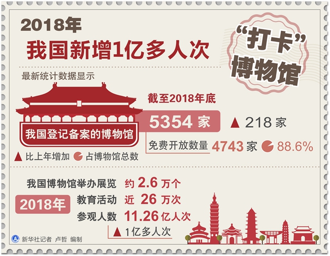 新華社長(zhǎng)沙5月18日電(記者施雨岑、柳王敏)最新統(tǒng)計(jì)數(shù)據(jù)顯示,2018年,我國(guó)博物館舉辦展覽約2.6萬(wàn)個(gè),教育活動(dòng)近26萬(wàn)次,參觀人數(shù)達(dá)11.26億人次,比上年增加1億多人次。