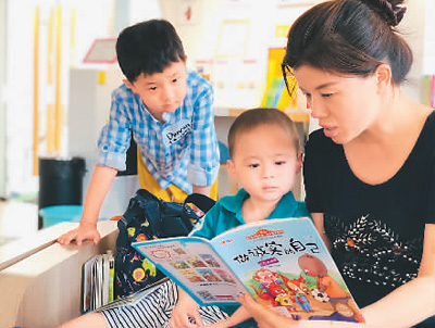 兒童圖書館內,家長正在為孩子閱讀繪本。記者 孫亞慧攝