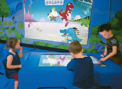 陸浩川團隊的人機交互產品如今已銷往全球20多個國家。圖為兒童正在交互屏幕前玩得不亦樂乎。(受訪者供圖)