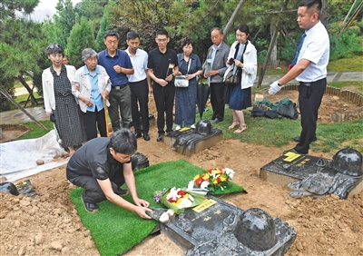 昨日早晨8點,在親屬陪伴下,第250份烈士骨灰由八寶山革命公墓烈士骨灰堂遷葬至公墓新建的烈士紀念園。按計劃,革命公墓烈士骨灰堂現(xiàn)存的680份骨灰將于本月底前完成遷葬。
