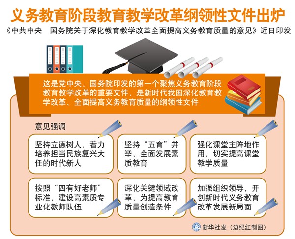 圖表:義務(wù)教育階段教育教學(xué)改革綱領(lǐng)性文件出爐 新華社發(fā) 邊紀(jì)紅 制圖