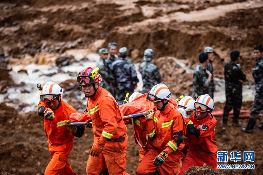 7月24日,救援人員從山體滑坡現(xiàn)場(chǎng)運(yùn)出遇難者遺體。新華社記者 陶亮 攝