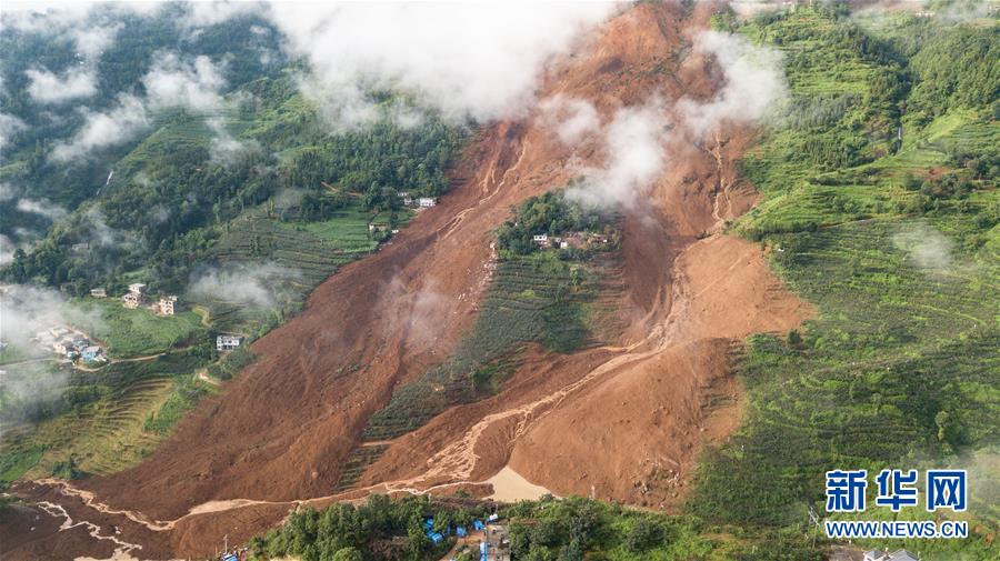 這是水城縣雞場(chǎng)鎮(zhèn)坪地村山體滑坡現(xiàn)場(chǎng)(7月24日無(wú)人機(jī)拍攝)。新華社記者 陶亮 攝