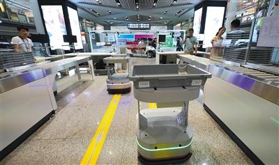 記者注意到,開包安檢員身旁有一臺小機器人,安檢員將書包放在機器人上方的行李筐內(nèi),機器人便自動將書包送到安檢口。每一條高效安檢通道都配置兩臺小機器人,以滿足可疑行李自動復檢的需要。(記者 吳婷婷)