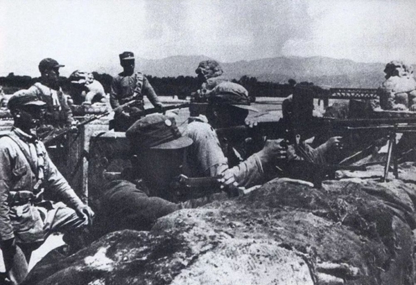 ↑1937年7月7日,駐華日軍發(fā)動“七七事變”(又稱“盧溝橋事變”),開始全面侵華。這是中國軍隊(duì)在盧溝橋抗擊日軍的進(jìn)攻。新華社發(fā)