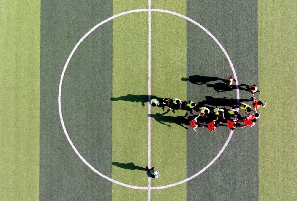 2019年4月17日,太行山深處,初中組男子足球隊(duì)隊(duì)員在分組對抗賽開始前互相擊掌。(新華社記者詹彥 攝)