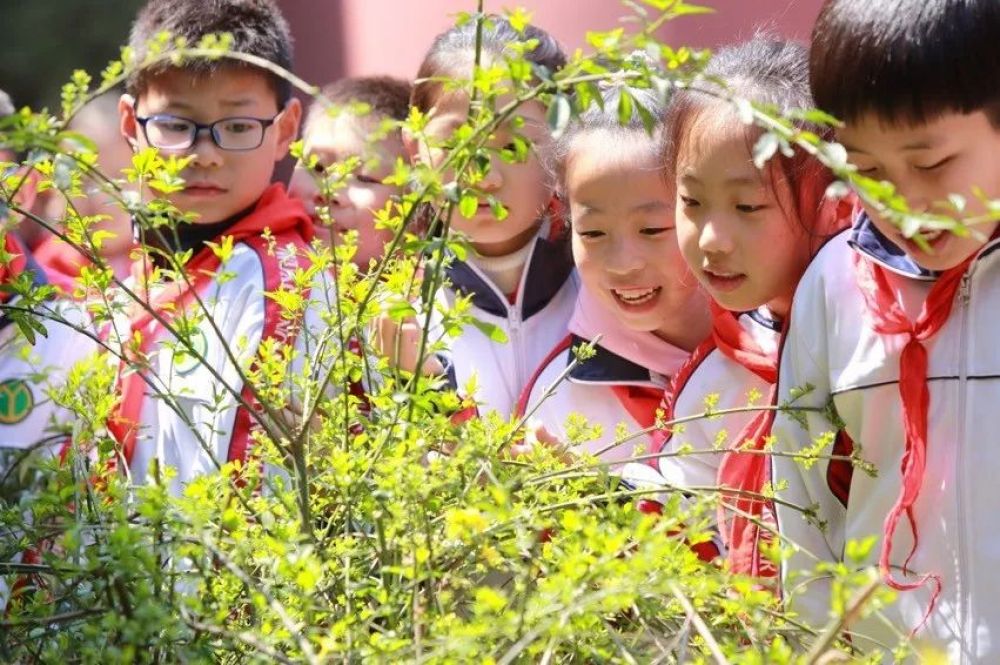 2019年4月1日,江蘇省無錫市揚(yáng)名中心小學(xué)的學(xué)生賞春踏青。(視覺中國圖)
