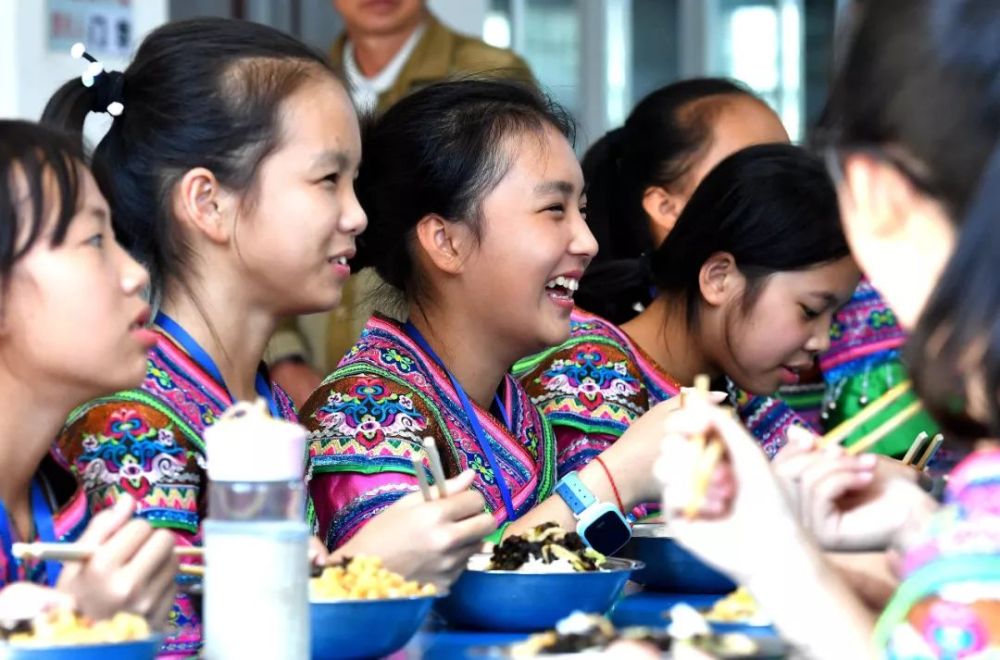 2017年11月1日,廣西融水苗族自治縣民族中學(xué)的學(xué)生們在吃營養(yǎng)餐。該縣共有5.6萬名學(xué)生享受免費(fèi)營養(yǎng)餐。(新華社記者黃孝邦 攝)