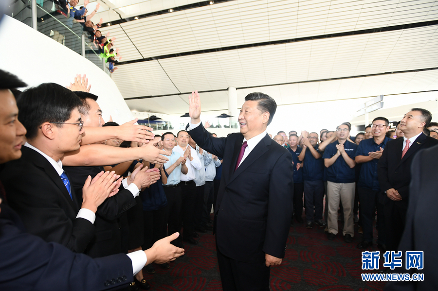 9月25日上午,北京大興國際機(jī)場投運(yùn)儀式在北京舉行。中共中央總書記、國家主席、中央軍委主席習(xí)近平出席儀式,宣布機(jī)場正式投運(yùn)并巡覽航站樓。這是習(xí)近平看望參與機(jī)場建設(shè)和運(yùn)營的工作人員代表,同他們親切交談。 新華社記者 謝環(huán)馳 攝