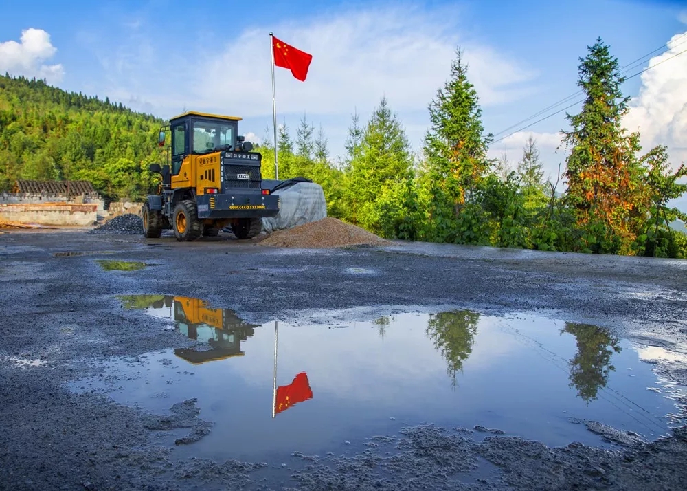 2019年9月27日,湖北利川。文化廣場建設工地,紅旗高高飄揚,以這種特有的喜慶方式迎接國慶。作者:利川六哥