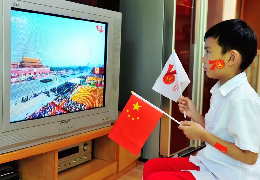 2019年10月1日,福建福州。金山小學二年級六班的小朋友在家中觀看國慶閱兵現場直播。作者:何江江