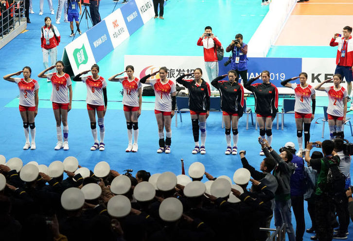 失金固然遺憾,但用盡全力的中國女排仍在軍運會賽場上受到了英雄般的待遇。
