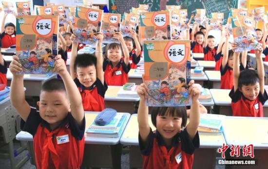 資料圖:一小學學生返回校園上課,學生們領取新課本,迎接新學期的到來。中新社發 司馬天民 攝