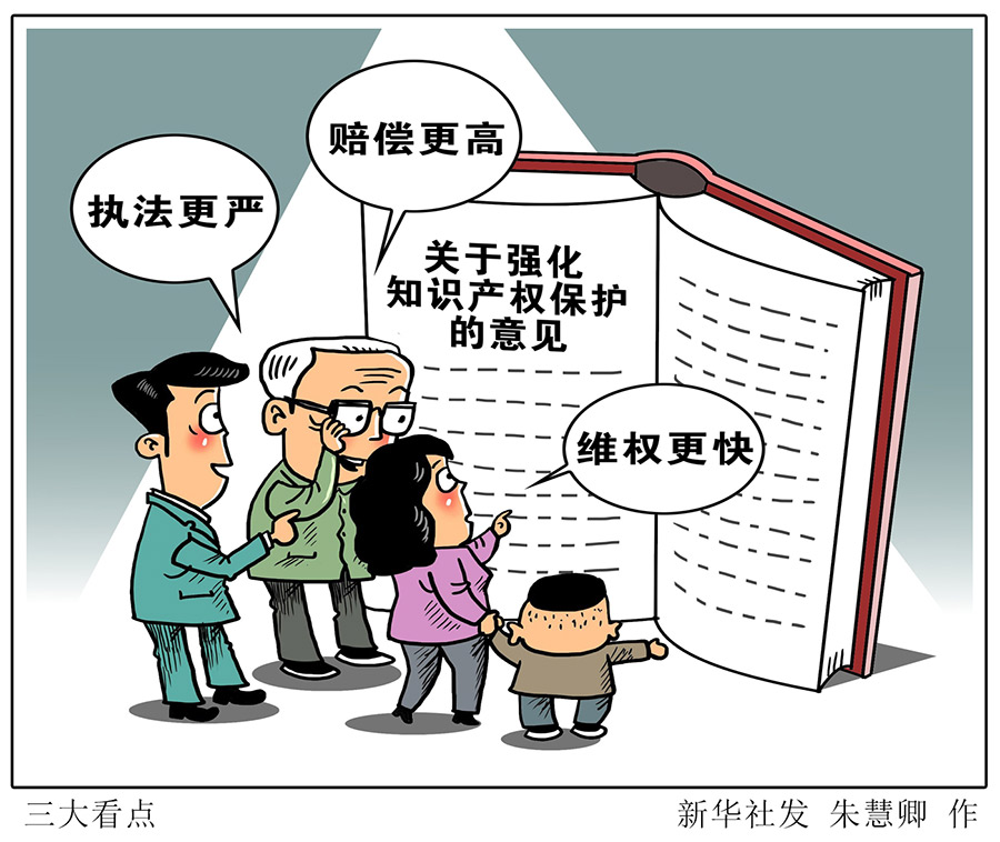 圖表:執(zhí)法更嚴、賠償更高、維權更快——《關于強化知識產(chǎn)權保護的意見》三大看點 新華社記者 陳琛 編制