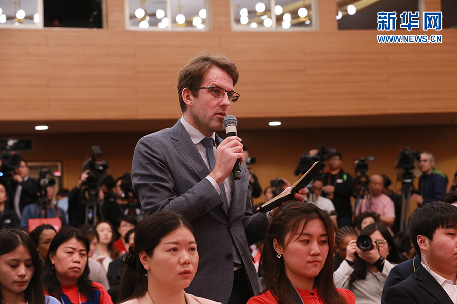 十三屆全國人大二次會(huì)議新聞中心于3月6日(星期三)上午10時(shí)在梅地亞中心新聞發(fā)布廳舉行記者會(huì),邀請(qǐng)國家發(fā)展改革委主任何立峰,副主任寧吉喆、連維良就“大力推動(dòng)經(jīng)濟(jì)高質(zhì)量發(fā)展”相關(guān)問題回答中外記者的提問。圖為彭博新聞社記者提問。新華網(wǎng)/中國政府網(wǎng) 馬娟 攝