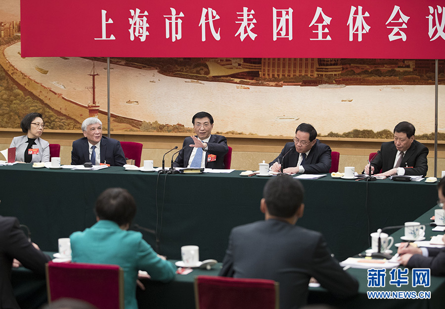 3月7日,中共中央政治局常委、中央書(shū)記處書(shū)記王滬寧參加十三屆全國(guó)人大二次會(huì)議上海代表團(tuán)的審議。 新華社記者 王曄 攝