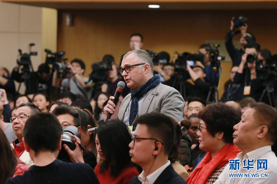 十三屆全國人大二次會議新聞中心3月8日10時在梅地亞中心新聞發(fā)布廳舉行記者會,邀請國務委員兼外交部長王毅就“中國外交政策和對外關系”相關問題回答中外記者提問。圖為安莎社記者。新華網(wǎng)/中國政府網(wǎng) 馬娟 攝