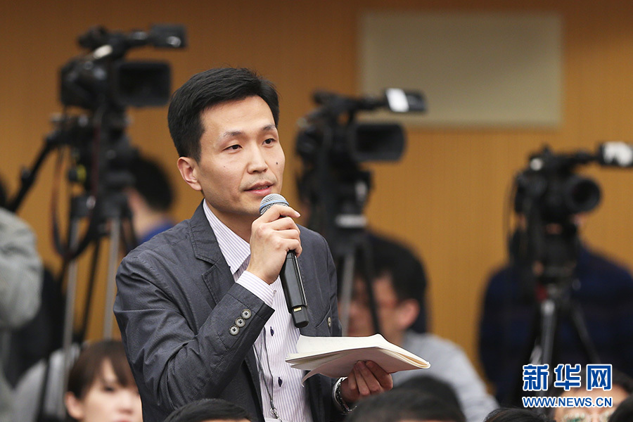 十三屆全國人大二次會議新聞中心3月9日(星期六)15時在梅地亞中心新聞發布廳舉行記者會,邀請國務院國資委主任肖亞慶,副主任翁杰明,秘書長、新聞發言人彭華崗就“國有企業改革發展”相關問題回答中外記者提問。圖為中央廣播電視總臺國廣記者提問。新華網/中國政府網 劉廈 攝