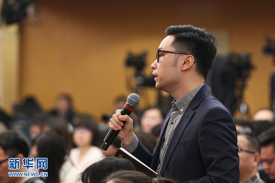 十三屆全國人大二次會議新聞中心3月9日(星期六)15時在梅地亞中心新聞發布廳舉行記者會,邀請國務院國資委主任肖亞慶,副主任翁杰明,秘書長、新聞發言人彭華崗就“國有企業改革發展”相關問題回答中外記者提問。圖為中國新聞社記者提問。新華網/中國政府網 劉廈 攝