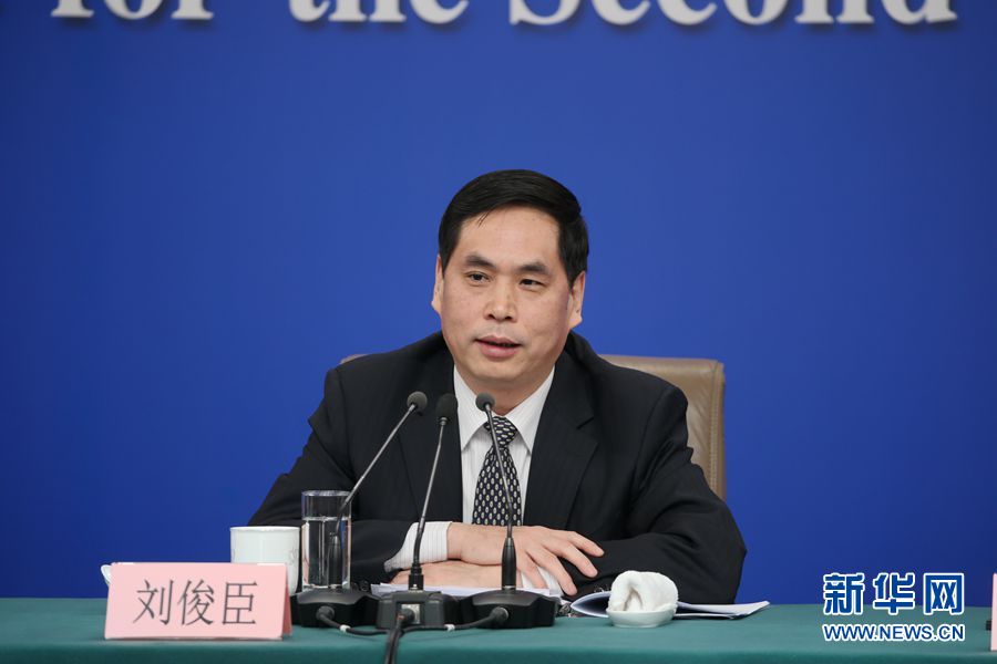 十三屆全國人大二次會議新聞中心3月9日在梅地亞中心新聞發布廳舉行記者會,邀請全國人大農業與農村委員會主任委員陳錫文、全國人大財政經濟委員會副主任委員烏日圖、全國人大常委會法制工作委員會副主任劉俊臣、全國人大常委會法制工作委員會副主任許安標、全國人大環境與資源保護委員會委員程立峰就“人大立法工作”相關問題回答記者提問。圖為全國人大常委會法制工作委員會副主任劉俊臣回答記者提問。新華網/中國政府網 劉廈 攝
