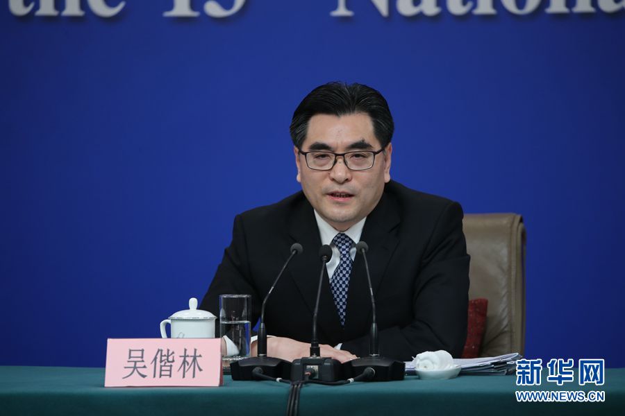 十三屆全國人大二次會議新聞中心于3月12日15時在梅地亞中心新聞發(fā)布廳舉行記者會,邀請最高人民法院審判委員會副部級專職委員劉貴祥,福建省高級人民法院院長吳偕林,江西省高級人民法院院長葛曉燕就“攻堅‘基本解決執(zhí)行難’”相關問題回答中外記者提問。圖為吳偕林回答記者提問。新華網/中國政府網 劉廈攝