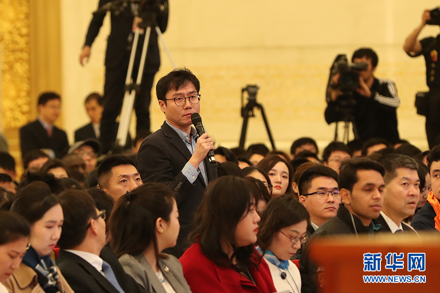 3月15日上午十三屆全國人大二次會議閉幕后,國務院總理李克強在人民大會堂三樓金色大廳會見采訪十三屆全國人大二次會議的中外記者并回答記者提出的問題。圖為韓國日報記者提問。新華網/中國政府網?陳杰 攝
