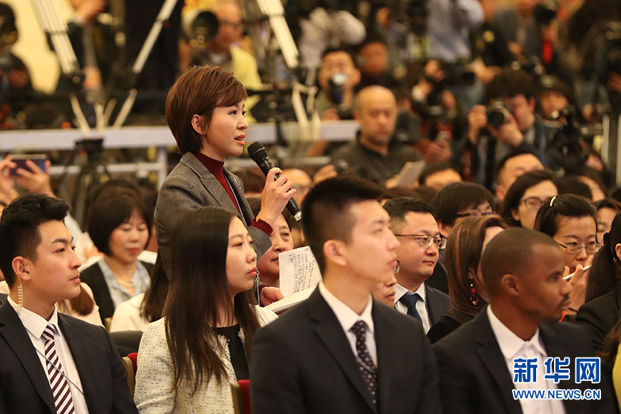 3月15日上午十三屆全國人大二次會議閉幕后,國務院總理李克強在人民大會堂三樓金色大廳會見采訪十三屆全國人大二次會議的中外記者并回答記者提出的問題。圖為中國廣播電視總臺記者提問。新華網/中國政府網?陳杰 攝