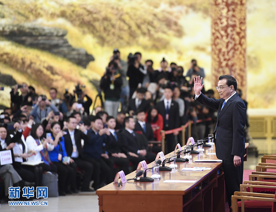 3月15日,十三屆全國人大二次會議在北京人民大會堂舉行記者會,國務院總理李克強應大會發言人張業遂的邀請會見中外記者,并回答記者提問。 新華社記者 申宏 攝