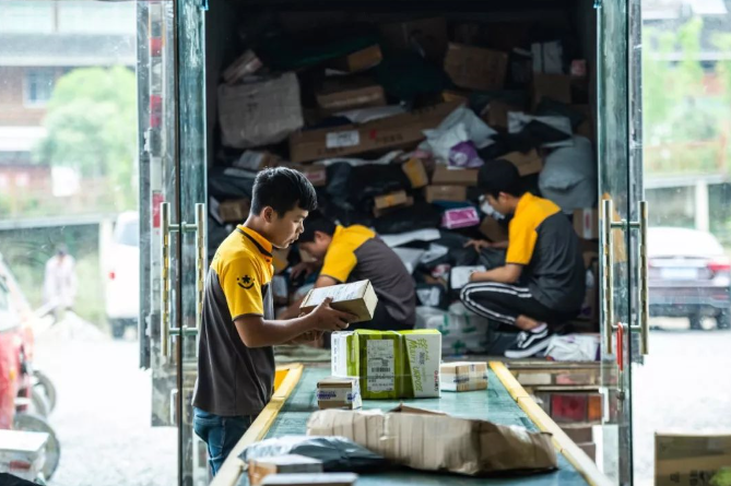 2019年5月24日,快遞員在貴州省雷山縣“通村村”調度中心分揀包裹 陶亮 攝