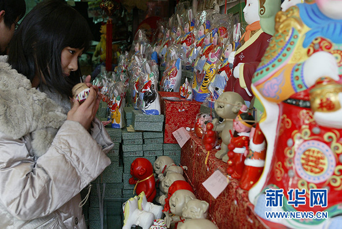 2014年2月4日,一名女孩在廠甸廟會上挑選老北京手工藝品。(圖片來源:新華社 記者郝麗穎 攝)