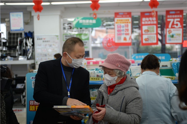 1月23日,在長沙一家老百姓大藥房內(nèi),店員向市民介紹不同類型的口罩。當(dāng)日,長沙不少市民來到藥店購買口罩。長沙連鎖藥企老百姓大藥房質(zhì)量負(fù)責(zé)人表示,為使市民都能買到口罩,防止囤貨,每位進店市民限購五份口罩;自新型冠狀病毒感染的肺炎疫情發(fā)生以來,店內(nèi)口罩價格沒有變化。新華社發(fā)(陳振海 攝)