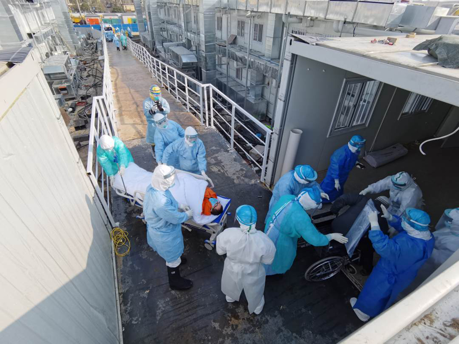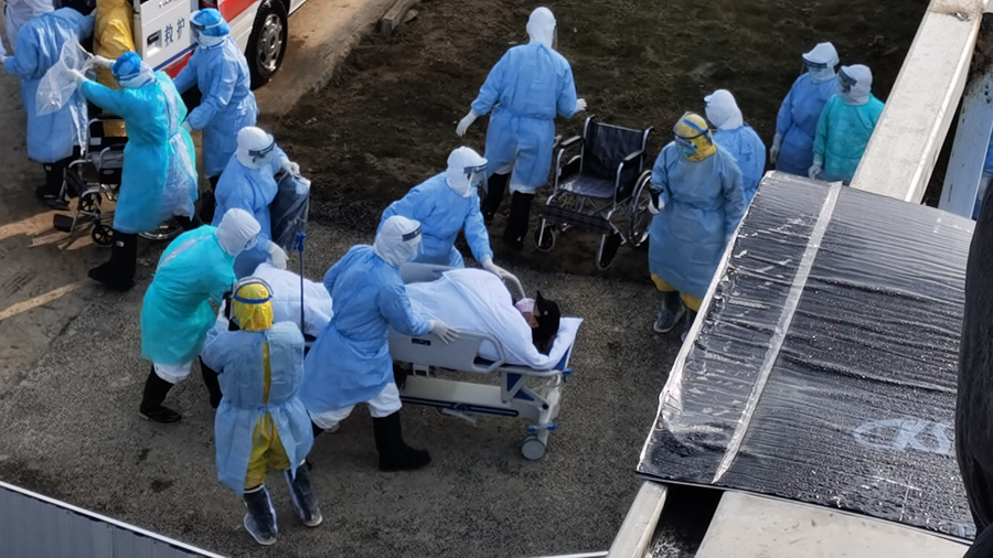 2月4日上午9時許,轉運首批患者的車輛抵達火神山醫院。