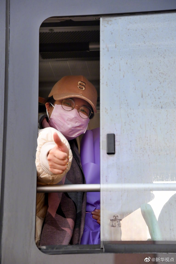 記者看到,出院患者生命體征和精神狀態都有明顯改觀,均無需攙扶,可獨立行走。一名66歲的患者臨行前,連連向前來送行的醫護人員鞠躬致謝。
