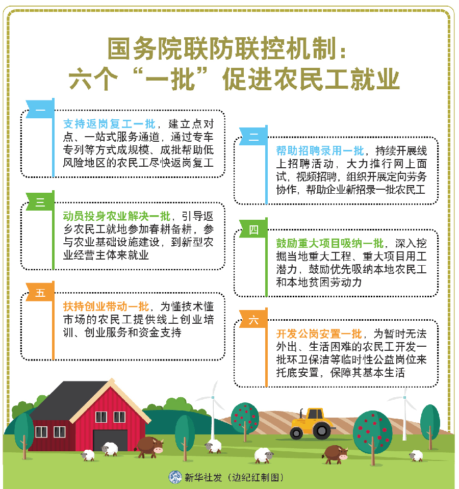 六是開發(fā)公崗安置一批,為暫時無法外出、生活困難的農(nóng)民工開發(fā)一批環(huán)衛(wèi)保潔等臨時性公益崗位來托底安置,保障其基本生活。