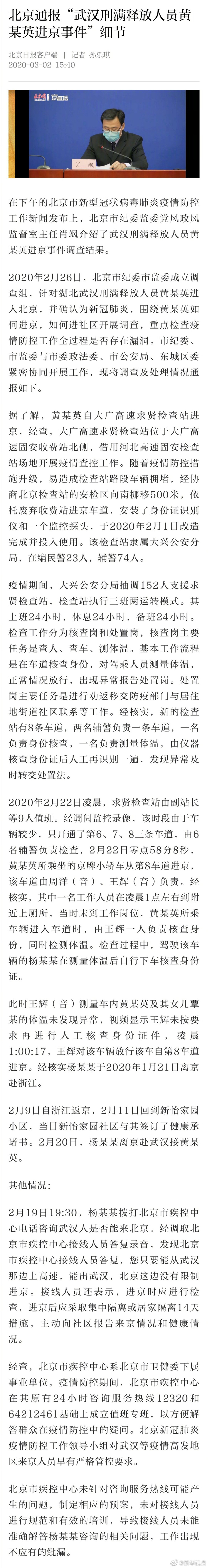 北京通報“武漢刑滿釋放人員黃某英進京事件”細節-新華網