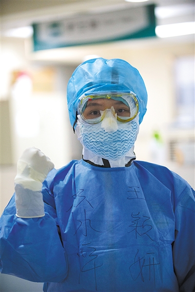 在口罩、手套、眼罩、鞋套、防護服的重重包裹下,田蓉的動作變得有些緩慢。但經過一個多月的一線工作,她已經適應了這樣的全副武裝,還摸索出了一些小技巧。剛來時,她依照網傳的經驗,用洗滌靈擦拭防護眼罩,防止霧氣上鏡,結果剛進病房眼前就糊了,只能用余光搜尋霧氣的“破綻”,借助一小片視野完成救治。后來,田蓉將洗滌靈換成碘伏,效果不錯,擺脫了霧氣的困擾。