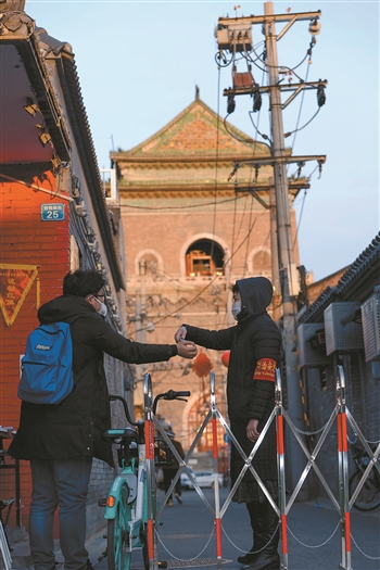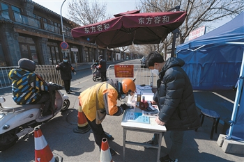 “我們從大年三十就開始排班了。我是從正月初三開始進社區做入戶排查,現在和另外兩名志愿者一起負責這個路口,從早上九點到晚上九點不間斷。”來自前門街道辦事處政務服務中心的周偉介紹說。